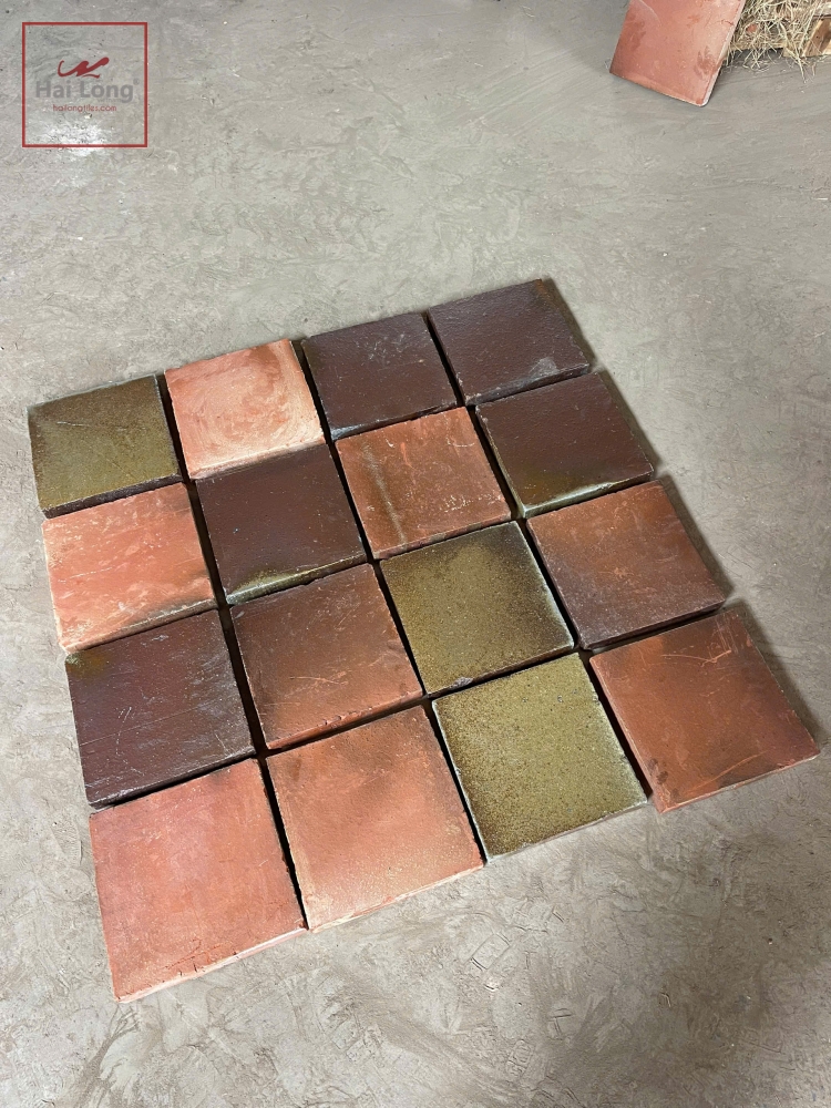 Men được nung chảy hòa quyện cùng thân gạch trong quá trình đun, tạo nên lớp men “sống” – không bong tróc, không phai màu, bền bỉ theo thời gian. Tone màu của dòng gạch men cổ Bát Tràng vô cùng đa dạng: từ đỏ đất nung, nâu gấm, vàng cháy đến ghi xám cổ điển – tất cả đều mang đậm chất gốm Việt.