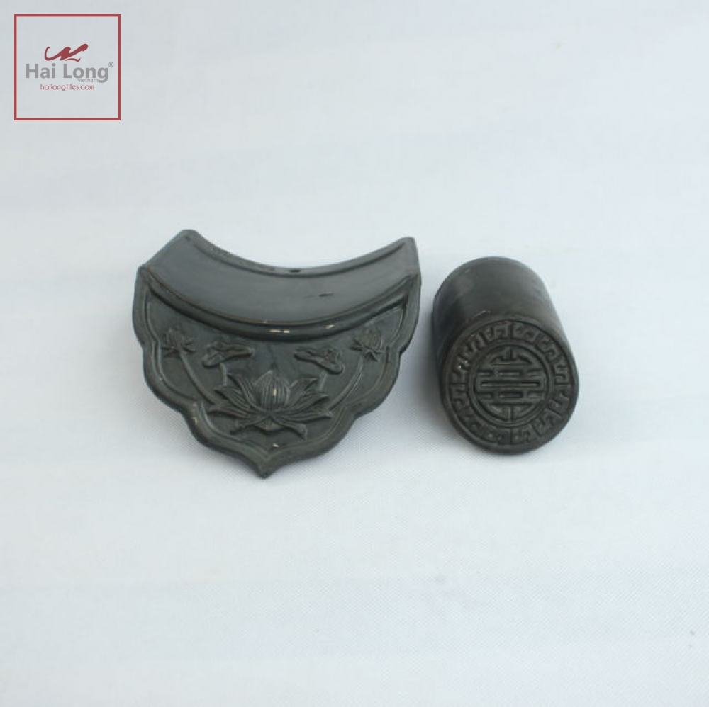 Ngói âm dương sen kép, chữ thọ men ánh thép- cỡ nhỏ